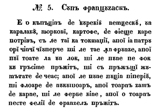 French Soup is a historical Romanian recipe from 1842, presented with ingredients, preparation, and historical context. This page brings together the available transcription, editorial notes, and the original manuscript image.