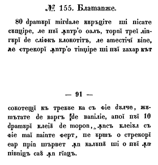 Blanc-manger este o rețetă românească veche din 1842, prezentată cu ingrediente, preparare și context istoric. Pagina reunește transcrierea disponibilă, notele editoriale și imaginea manuscrisului original.