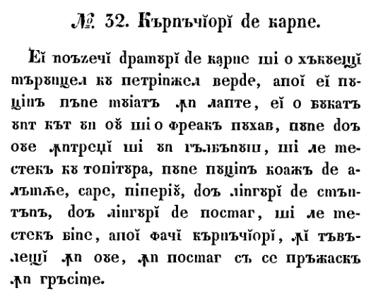 Cârpeșori de carne este o rețetă românească veche din 1842, prezentată cu ingrediente, preparare și context istoric. Pagina reunește transcrierea disponibilă, notele editoriale și imaginea manuscrisului original.