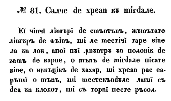 Sos de hrean cu migdale este o rețetă românească veche din 1842, prezentată cu ingrediente, preparare și context istoric. Pagina reunește transcrierea disponibilă, notele editoriale și imaginea manuscrisului original.