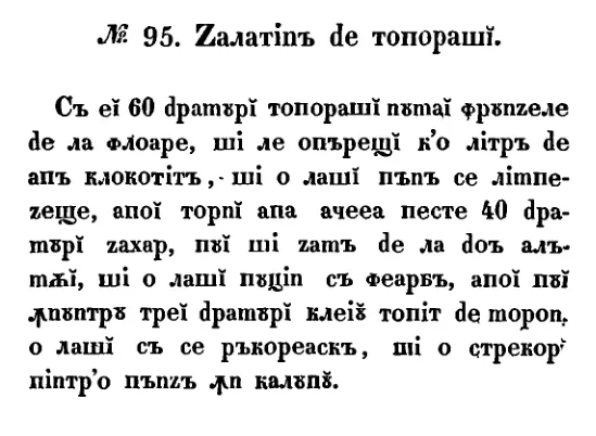 Zalatin de toporași este o rețetă românească veche din 1842, prezentată cu ingrediente, preparare și context istoric. Pagina reunește transcrierea disponibilă, notele editoriale și imaginea manuscrisului original.