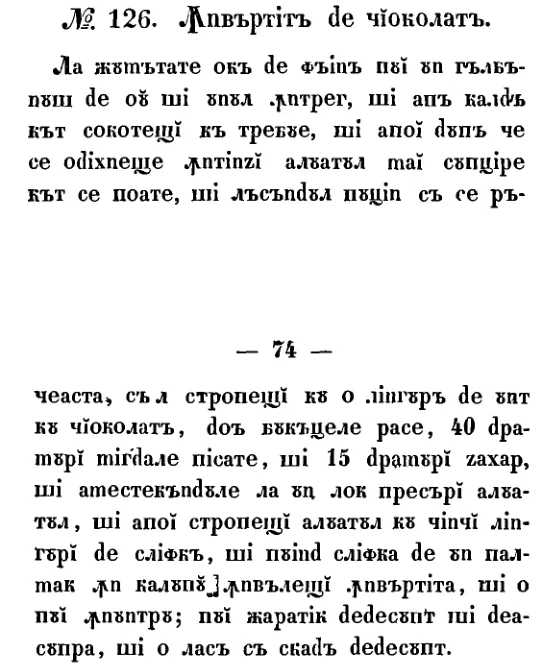 Învârtită de ciocolată este o rețetă românească veche din 1842, prezentată cu ingrediente, preparare și context istoric. Pagina reunește transcrierea disponibilă, notele editoriale și imaginea manuscrisului original.
